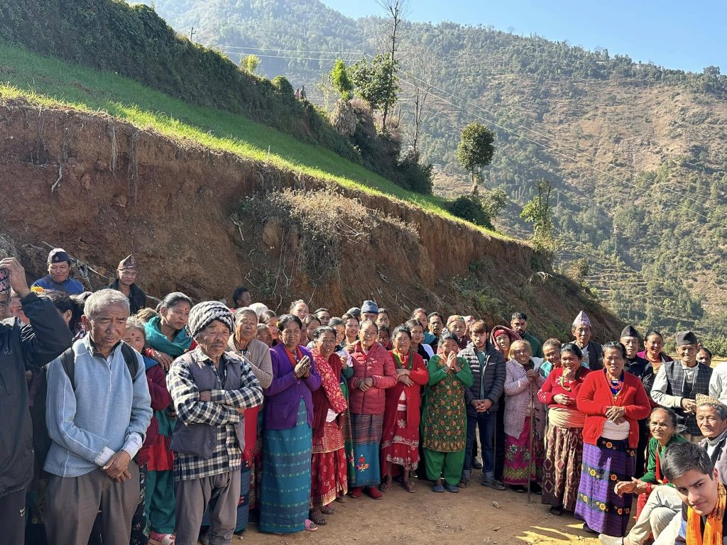 La distribution de couettes, le 30 décembre 2023, nous étions à Sunkhosi, GAUNPALIKA WARD 3, aux lieux dits Pouranakot et Pariya Muna (distribution en deux temps et deux lieux pour éviter aux personnes âgées d’avoir à marcher), Sindupalchok district, pour distribuer 340 couettes aux populations locales…